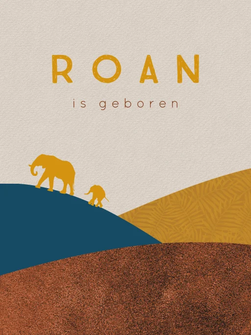 Leuke canvas van 30x40 cm met abstract landschap, gele olifantjes en stoere naam. Extra leuk als je ook voor het bijpassende geboortekaartje gaat. Pas deze canvas zelf aan in onze editor.