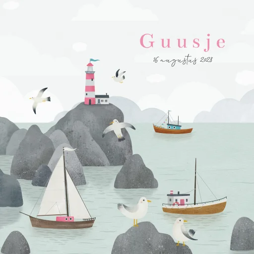 Canvasposter met houten magneetlatjes in formaat 40x40 cm. Heb je een babykamer in zeethema? Dan is deze poster extra toepasselijk. Extra leuk als je ook voor het bijpassende geboortekaartje gaat. Pas deze canvasposter zelf aan in onze editor.