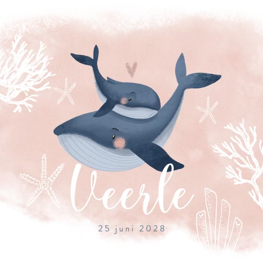 Roze canvasposter onderwater walvis en baby walvis