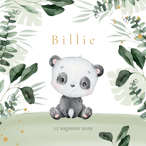 Geboortetegel met pandabeertje in jungle vol groene bladeren. Mooie herinnering aan de komst van jouw kindje.