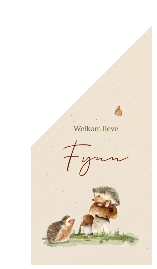 Deze schattige geboortevlag, met twee lieve egeltjes en een paddestoel, is perfect om aan de gevel van je huis te hangen als er een herfstkindje is geboren.