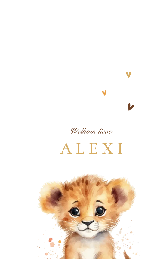 Geboortevlag om aan de gevel van je huis te hangen met een lief leeuwtje en hartjes.