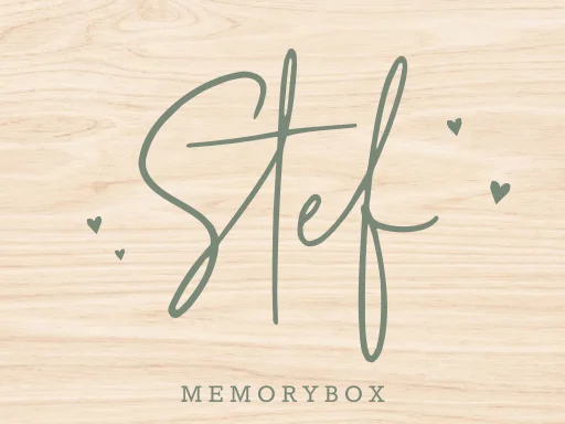 Supermooie memorybox voor je zoon met in het groot zijn naam in het groen in een speels lettertype en omgeven door lieve hartjes. Open het ontwerp in de designtool en pas de tekst, kleuren en het lettertype aan. Zo maak je de box eenvoudig zoals jij dat wilt.