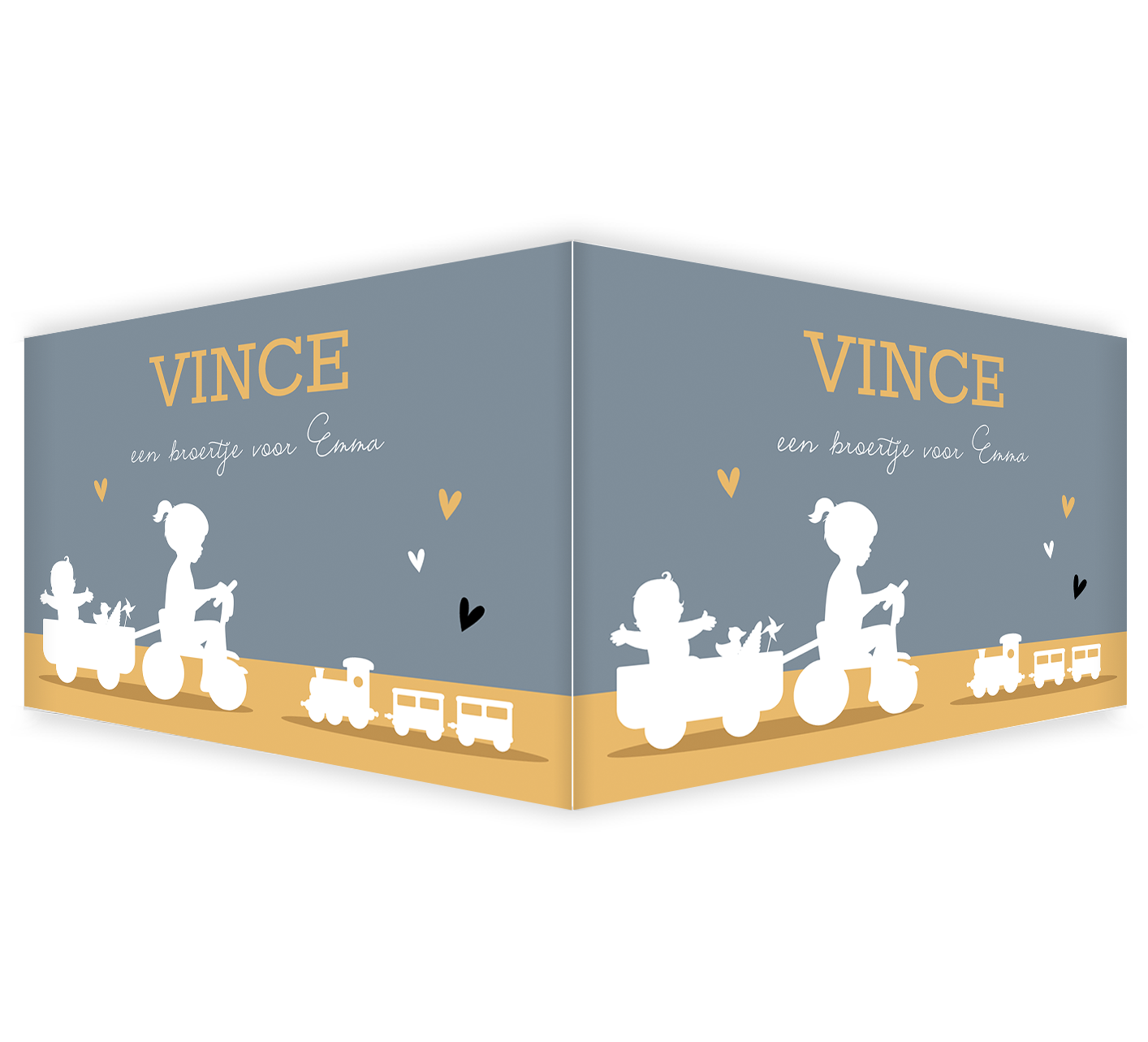 Dit liggende, witte geboortebord van 60x40 cm met beide kindjes erop past perfect bij dit geboortekaartje. Bevestig dit geboortebord op het raam en de hele buurt weet gelijk dat er bij jullie een jongetje geboren is.