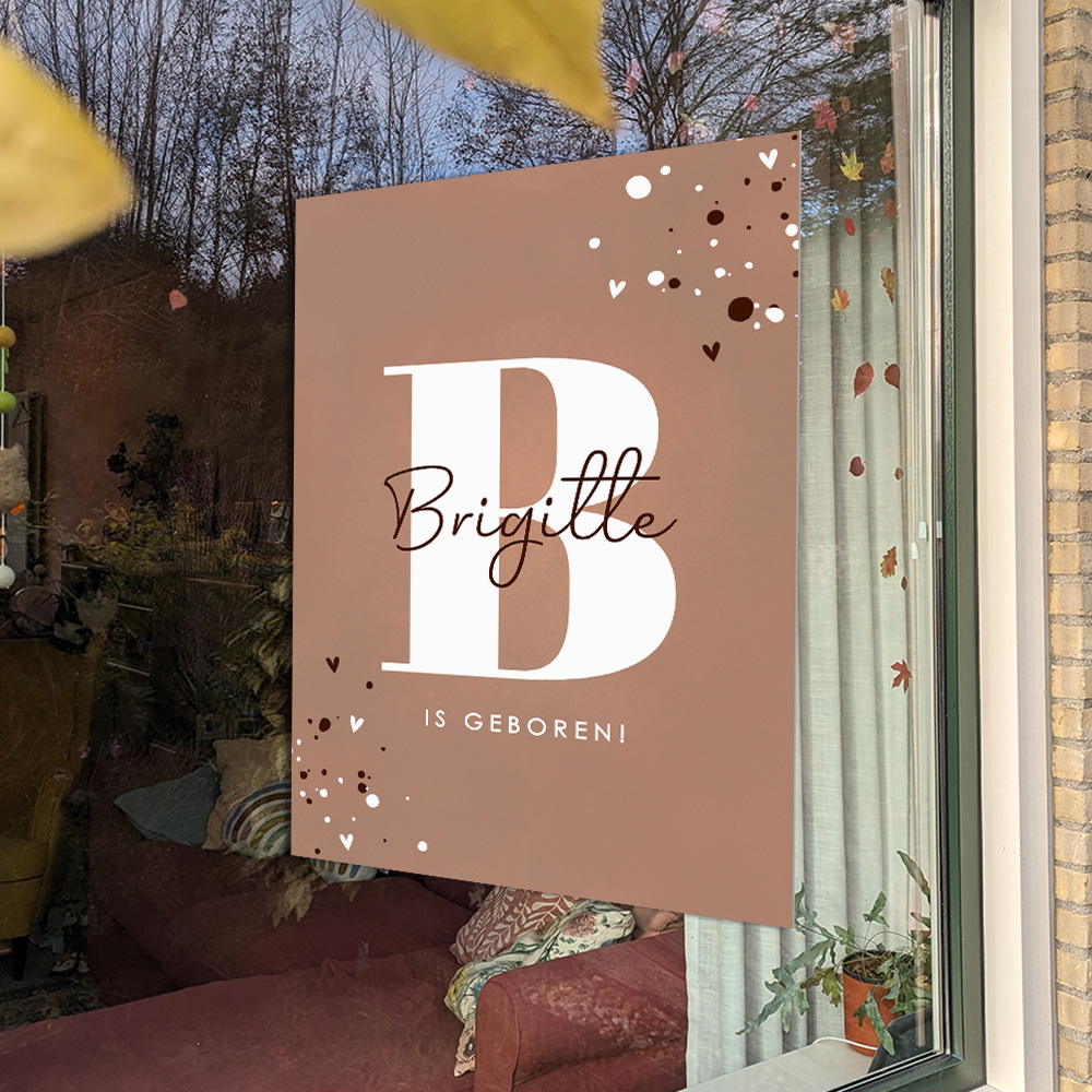 Mooi roestbruin raambord met groot wit initiaal van de eerste letter van de naam van jullie dochter. Pas dit raambord van 40x60 cm zelf aan in onze handige ontwerptool.