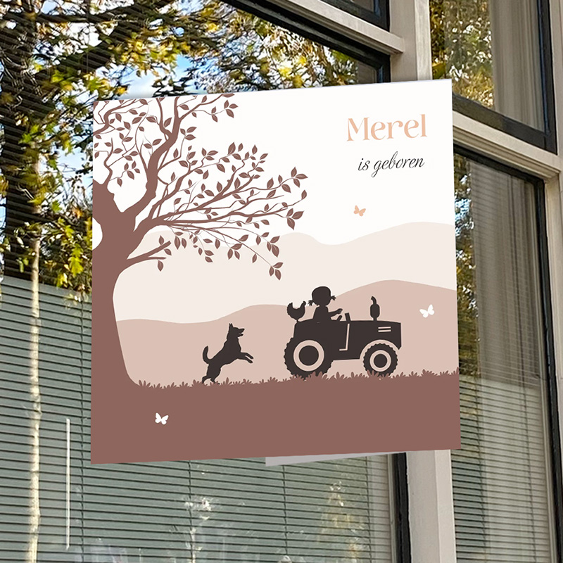 Dit raambord met zuignappen past perfect bij dit geboortekaartje.