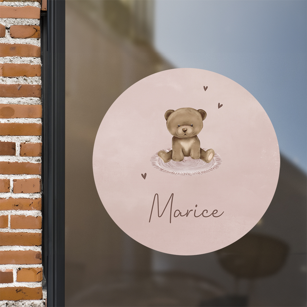 Oudroze raamsticker met beertje