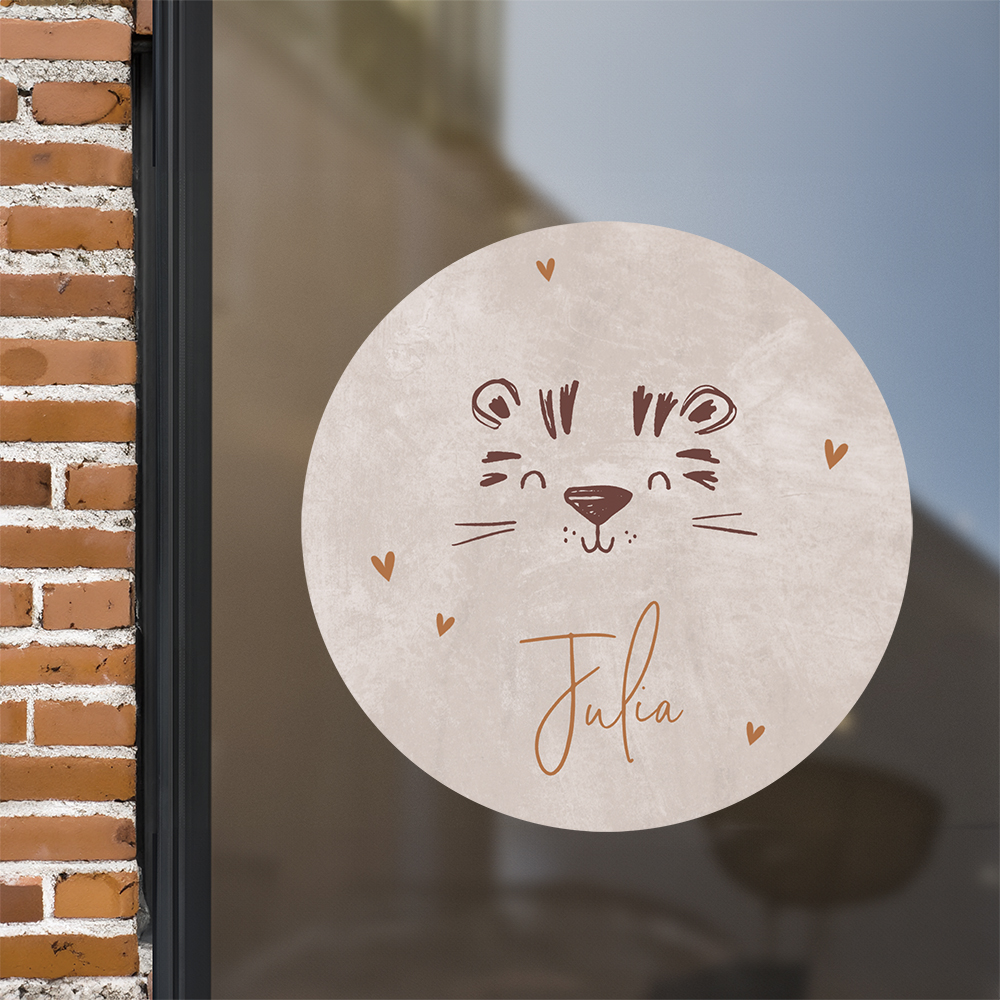 Deze ronde raamsticker van ø60 cm met stoer tijgertje past perfect bij dit geboortekaartje. Plak deze sticker op het raam en de straat weet gelijk dat er bij jullie een meisje geboren is.
