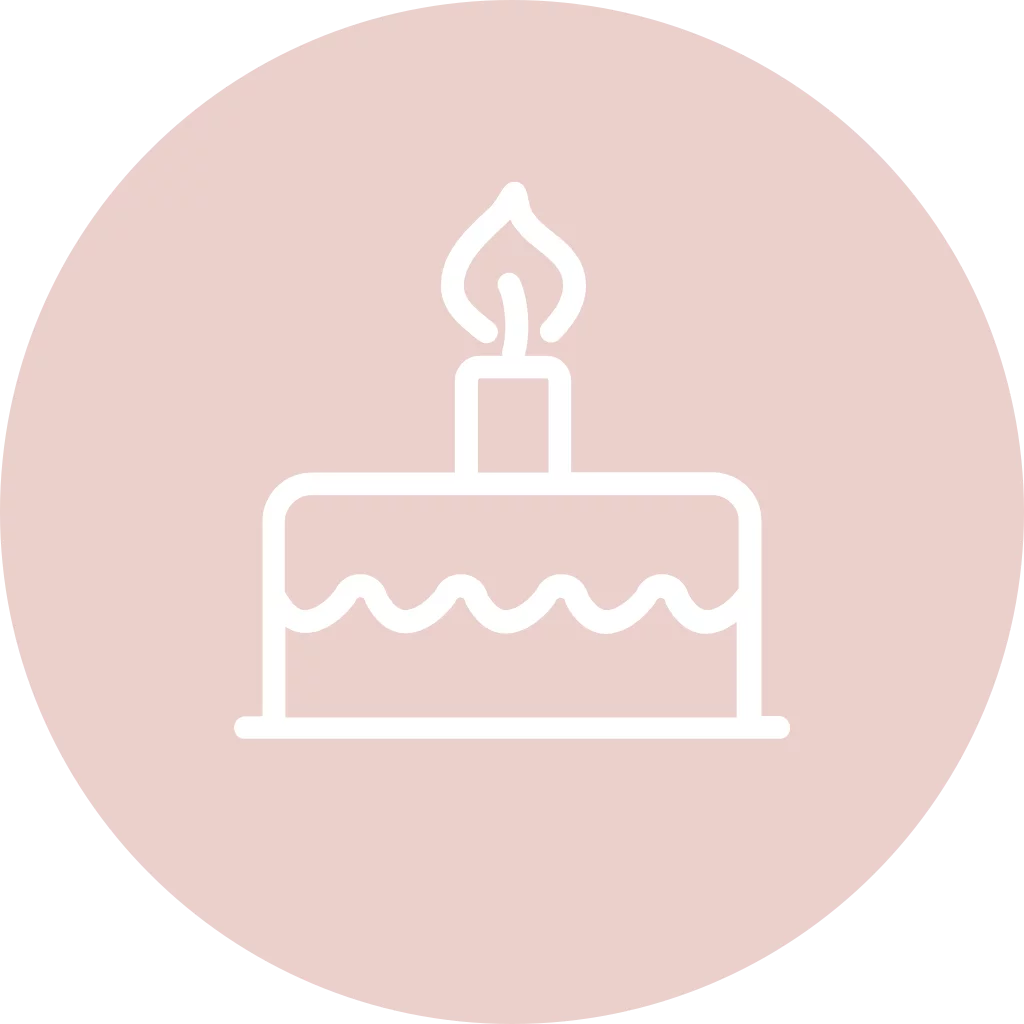 Lichtroze sluitsticker met icoon van verjaardagstaart. Gebruik deze sticker om de enveloppen van je uitnodigingen mee dicht te plakken en nodig iedereen uit voor je aankomende feestje! Liever een andere kleur? Pas deze sticker zelf aan in onze ontwerptool.