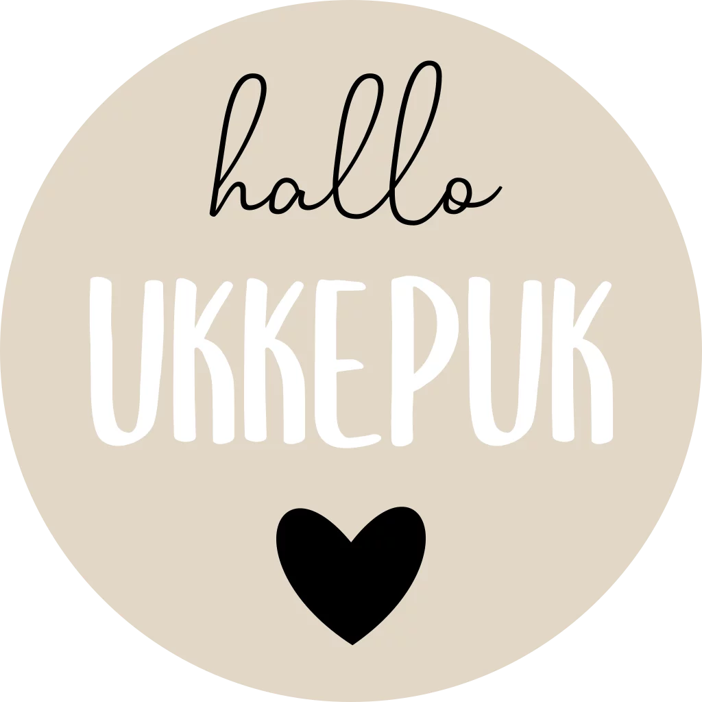 Deze lieve sticker past bij ieder geboortekaartje. Gebruik deze beige sluitsticker met hartje om de envelop te verzegelen. Met speelse typografie staat er 'hallo ukkepuk'. Pas de sluitsticker naar wens aan in de ontwerptool.