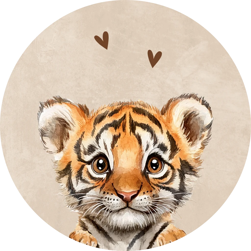 Beige sluitsticker met lief tijgertje