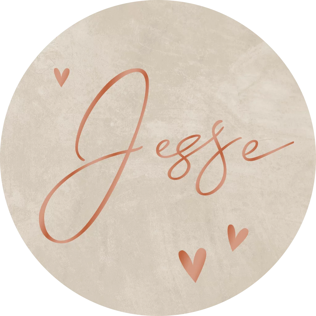 Lief beige sluitstickertje met de naam van je zoontje in hoogglans bruinrood. Plak de sticker op de enveloppen om de geboortekaartjes van je zoon helemaal af te maken. Pas de sticker zelf naar eigen smaak aan in onze ontwerptool.