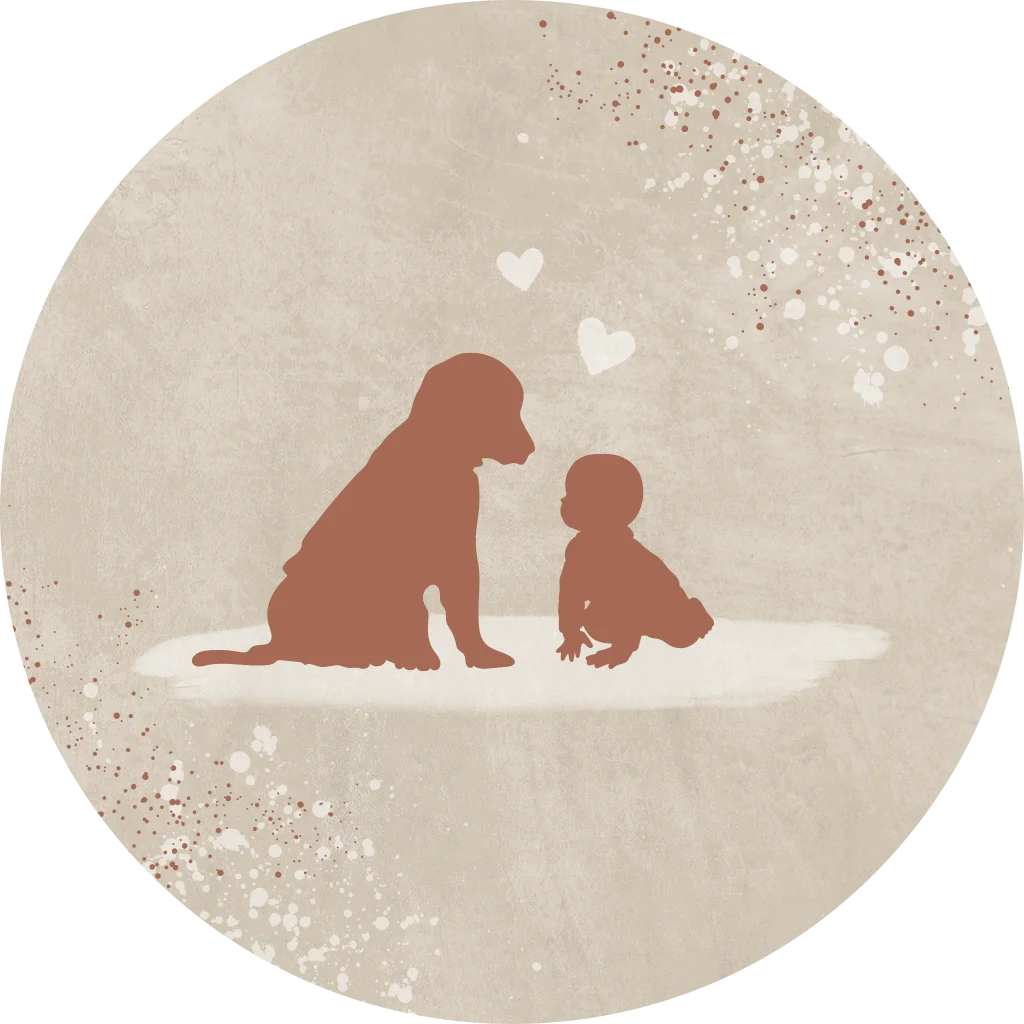 Beige sluitsticker met silhouetjes van hond en baby