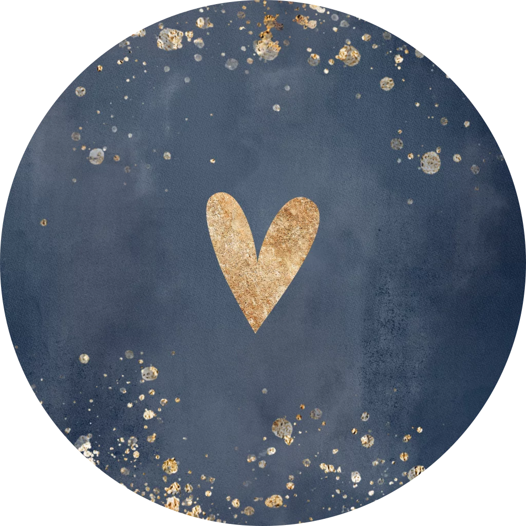 Een stijlvolle sluitsticker met donkerblauwe waterverf achtergrond en goudkleurige spetters en hartje. Pas deze sticker eenvoudig aan in onze ontwerptool.