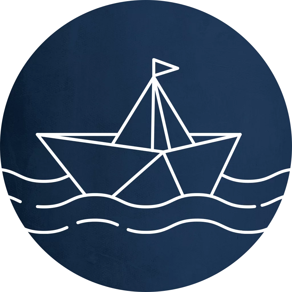 Een donkerblauwe sluitzegel met papieren bootje. Pas dit ontwerp eventueel aan in onze editor en versier je geboortekaart envelopjes of bedankjes met deze leuke sticker.