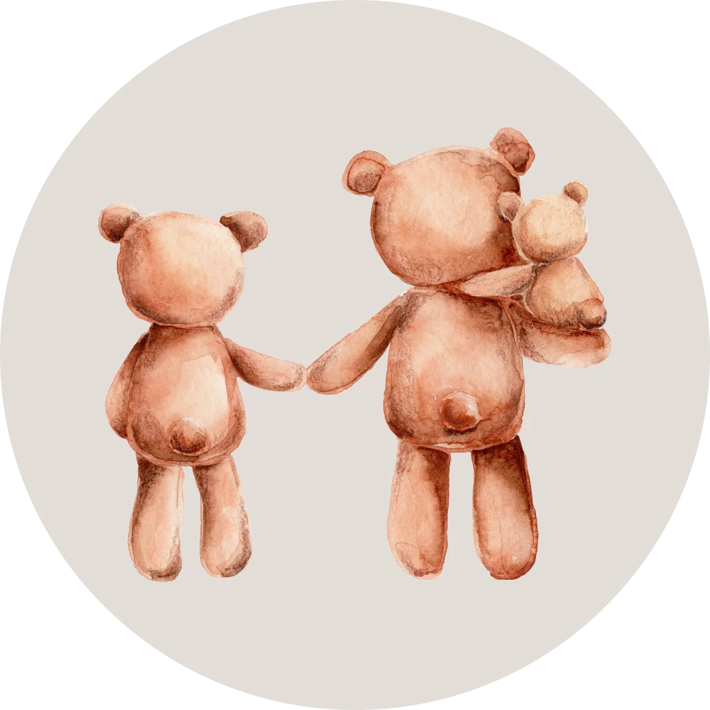 Schattie geboortesticker in neutrale kleur met een gezin van teddy beertjes. Pas deze sticker naar eigen wens aan in onze handige editor. Deze geboortesticker past perfect bij dit geboortekaartje.