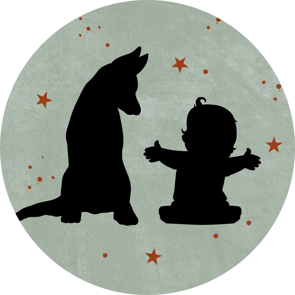 Lieve sluitsticker in grijsgroen met jongetje en herdershond. Plak de sticker op de enveloppen om de geboortekaartjes helemaal af te maken. Pas de sticker zelf naar eigen smaak aan in onze ontwerptool.