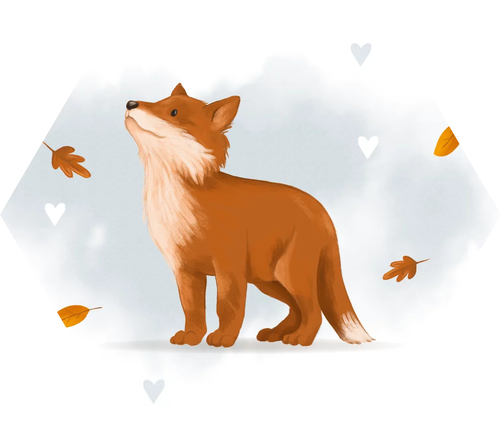 Herfst sluitsticker met vos en blauwe waterverf