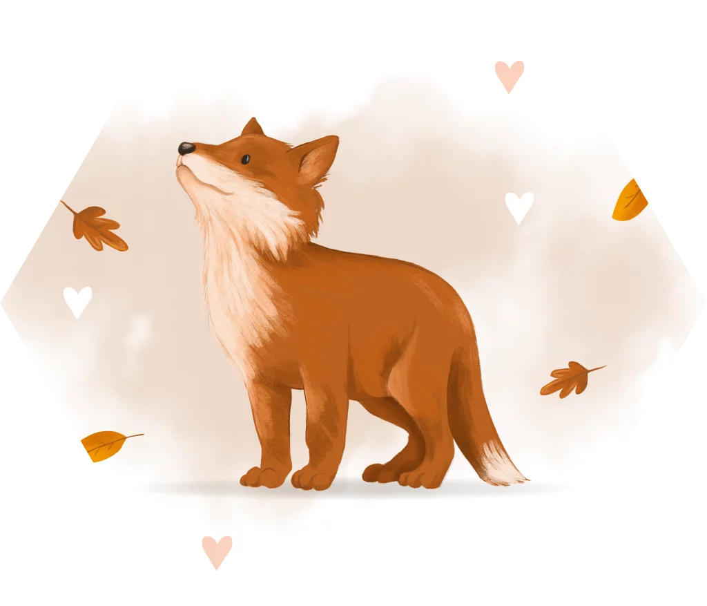 Herfst sluitsticker met vos en roze waterverf