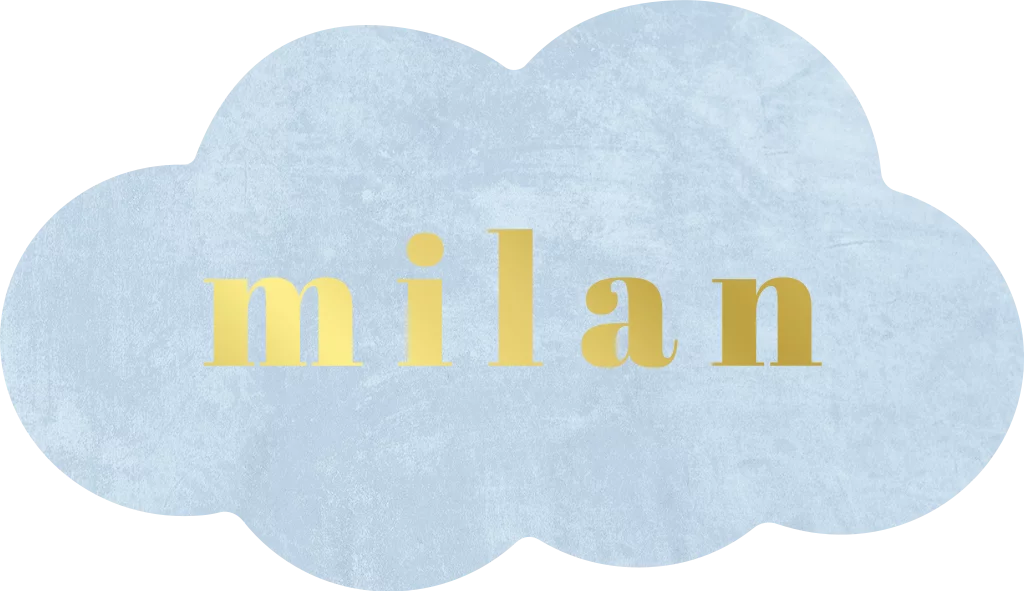 Lichtblauw wolkje sticker met goudfolie naam