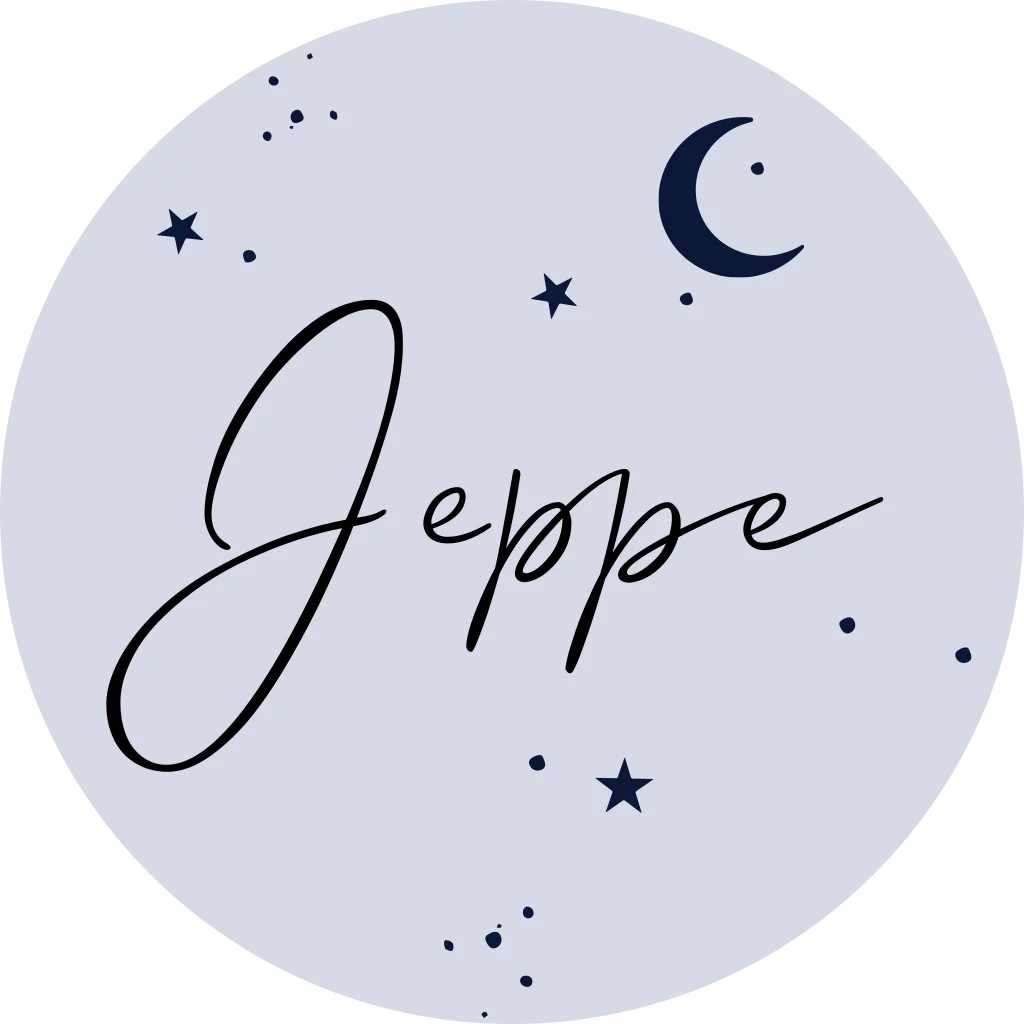Leuke lichtblauwe sticker met de naam van je zoontje, sterren en een maan. Pas de naam op deze sticker eenvoudig aan met de editor.