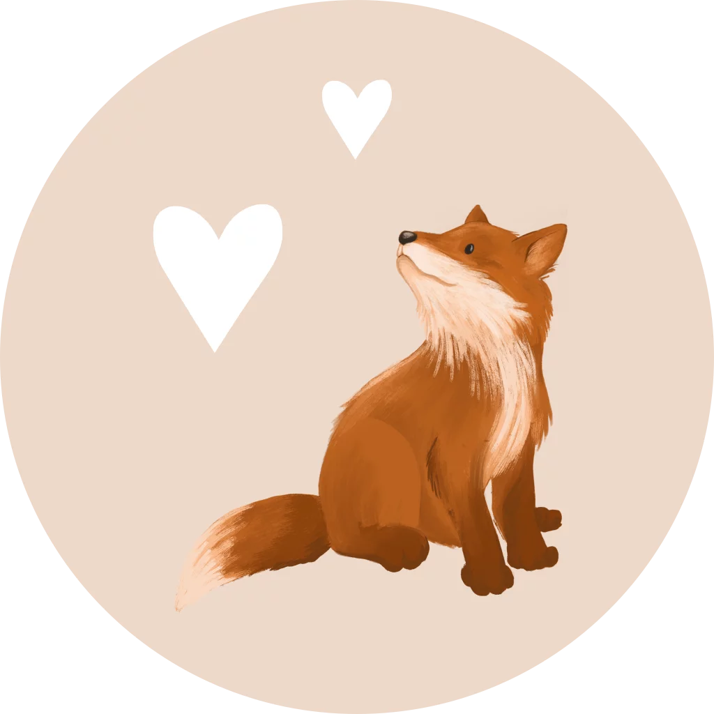 Versier de enveloppen van je geboortekaartjes met deze leuke lichtroze sticker met vosje en hartjes. Pas deze sticker eenvoudig aan in onze ontwerptool.