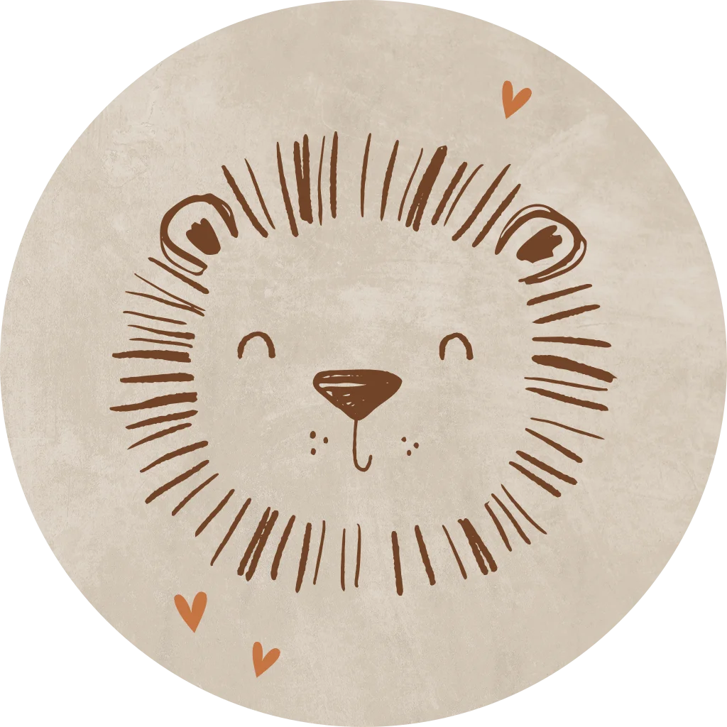 Lief sluitstickertje met leeuwtje en roestbruine hartjes. Plak de sticker op de enveloppen om de geboortekaartjes van je zoon of dochtertje helemaal af te maken. Pas de sticker zelf naar eigen smaak aan in onze ontwerptool.