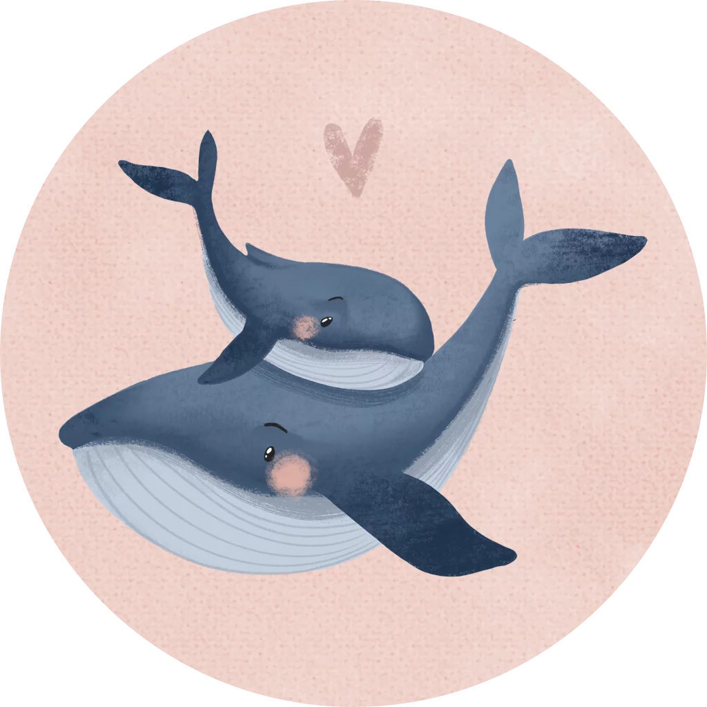 Op zoek naar een leuke sluitzegel voor op de enveloppen van het geboortekaartje van je dochtertje? Ga voor dit schattige ontwerp met roze achtergrond en twee walvisjes. Pas deze sluitzegel zelf aan in onze editor en combineer deze sticker met ons geboortekaartje 'Roze geboortekaartje meisje onderwater met walvis en baby walvis'.