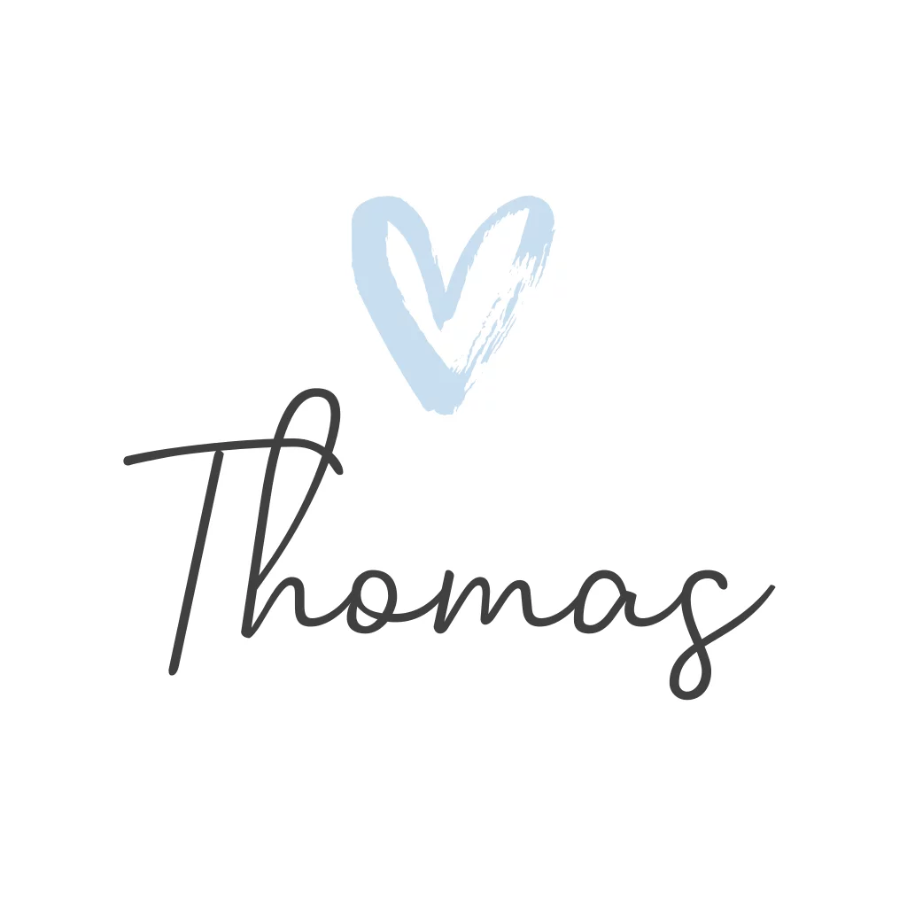 Lieve sluitsticker met sierlijke naam en lichtblauw hartje. Deze sticker zou ontzettend leuk staan op de enveloppen van je geboortekaartjes, zeker als je voor het kaartje 'Asymmetrisch DIY geboortekaartje jongen met blauw hartje en foto' zou gaan! Pas deze sticker zelf aan in onze ontwerptool.