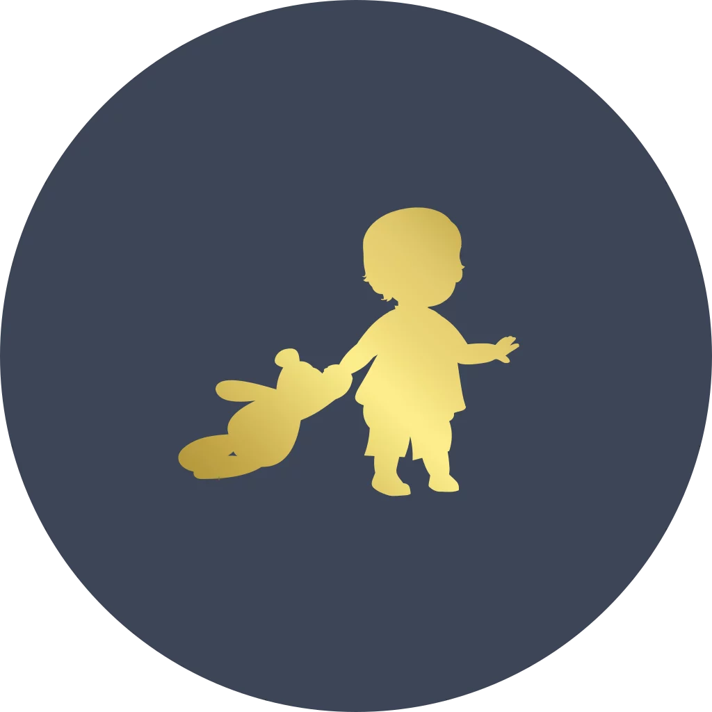 Sluitsticker met goudfolie silhouet jongen met teddybeer