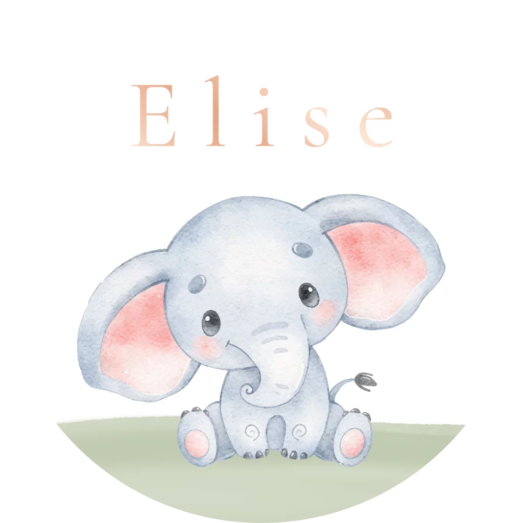 Sluitsticker met vrolijk olifantje. Pas de sticker naar wens aan met de editor. Deze sticker past perfect bij dit geboortekaartje.