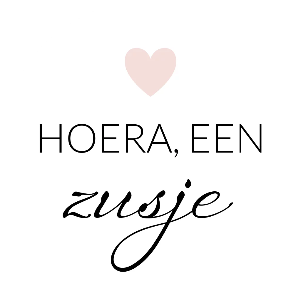 Is er een zusje onderweg? Dan is deze sticker extra leuk om op de envelop van het geboortekaartje te plakken. Op de sticker staat een roze hartje en de tekst 'hoera, een zusje'. Pas de sluitsticker naar wens aan in de ontwerptool.