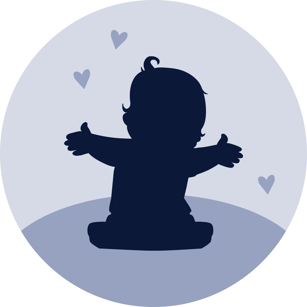 Versier de envelop van je geboortekaartje met deze leuke sticker met silhouet van een zittende baby en hartjes in verschillende tinten blauw. Pas deze sticker eenvoudig aan in onze ontwerptool, verander bijvoorbeeld de kleuren of voeg meer hartjes toe.