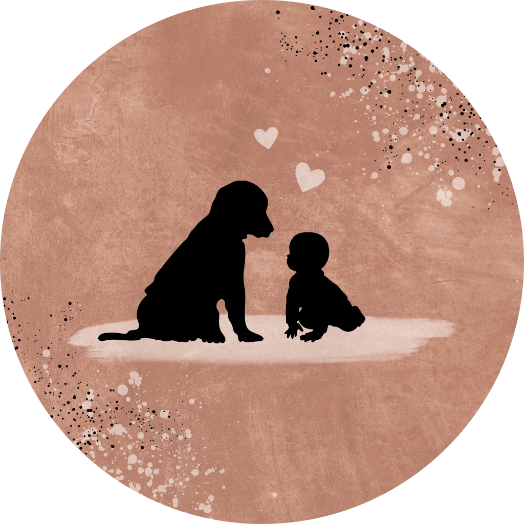 Mooie sluitzegel met silhouetjes van een hond en een baby op een terra achtergrond. Deze sluitzegel sluit goed aan bij ons geboortekaartje 'Terra geboortekaartje met silhouetjes hond en baby'. Pas het ontwerp naar eigen smaak aan in onze handige editor.