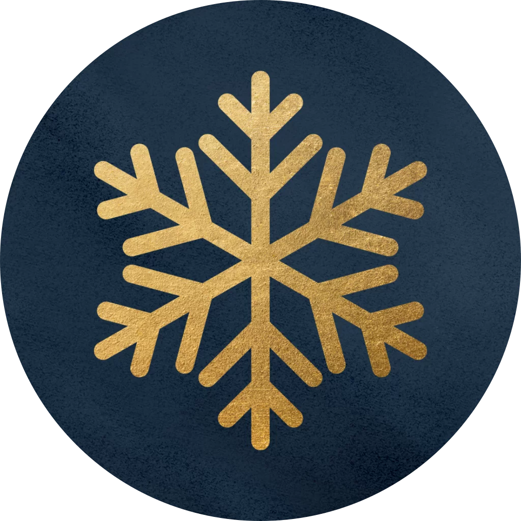 Stijlvolle ronde sluitsticker met donkerblauwe achtergrond en een goudkleurige sneeuwster. Het donkerblauw steekt mooi af op een witte envelop. Plak de sticker op je envelop en verstuur je kerst- of nieuwjaarskaart in stijl. Let op, dit is geen goudfolie!