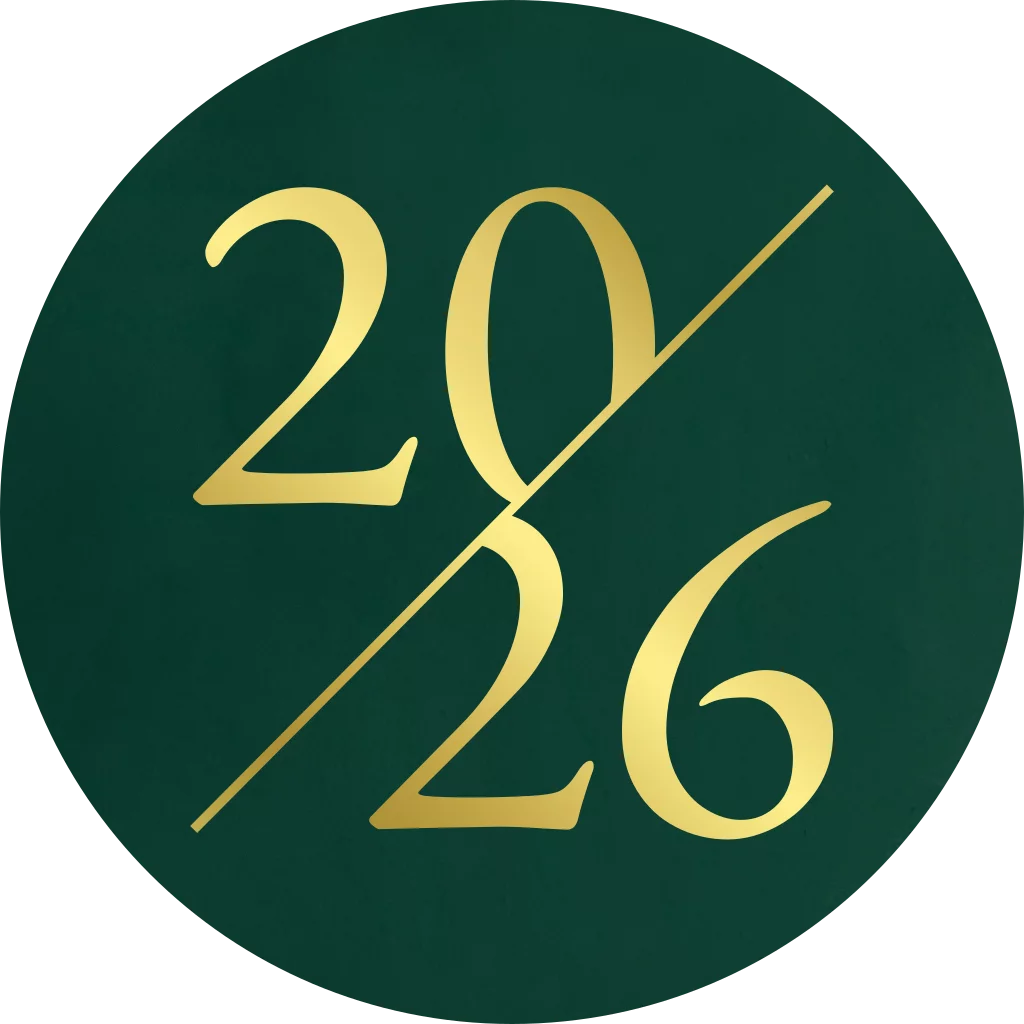 Groene nieuwjaarszegel met 2026 in goudfolie