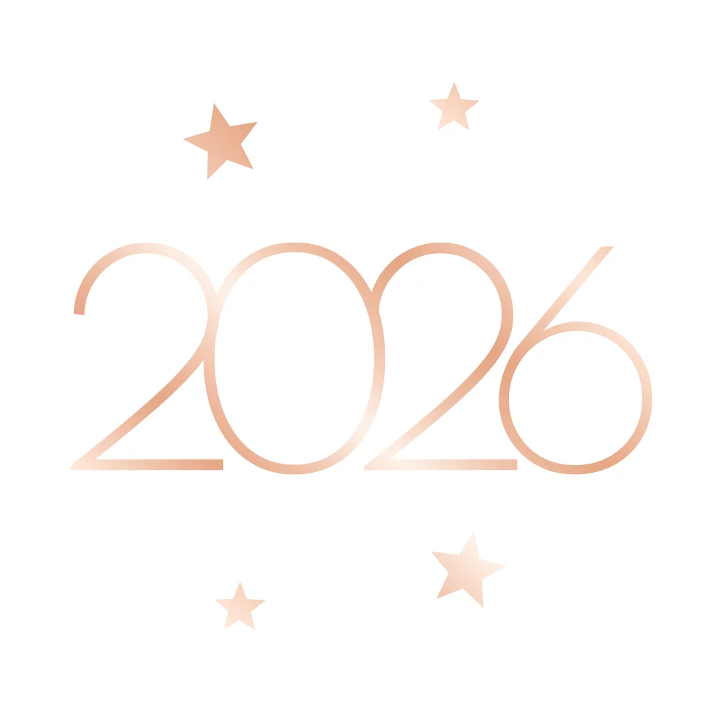 Plak je kerstkaarten dicht met deze mooie sluitsticker met 2026 en sterretjes in roségoudfolie erop. De achtergrond is wit dus plak deze sticker op een gekleurde envelop.