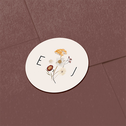 Mooie, beige sluitsticker met wilde bloemen en initialen in strak lettertype. Deze sticker sluit goed aan bij onze botanische trouwkaart Beige trouwkaart met wilde bloemenkrans. Pas deze sluitsticker naar eigen wens aan in onze ontwerptool.
