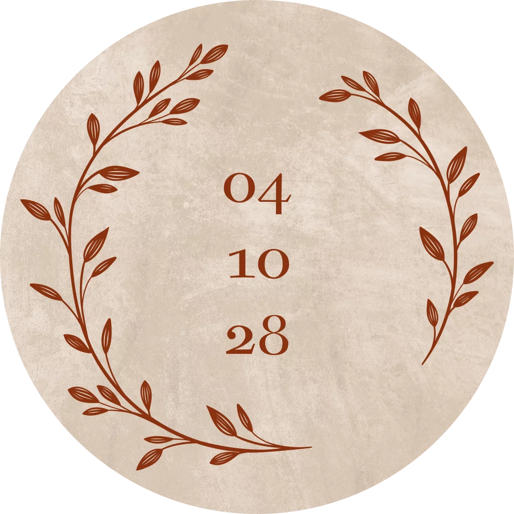 Een mooie sluitsticker in zachtbruine kleur met getekende blaadjes in warm donkerbruin. Jullie trouwdatum komt in het midden te staan. Pas deze sticker gemakkelijk aan in onze editor.