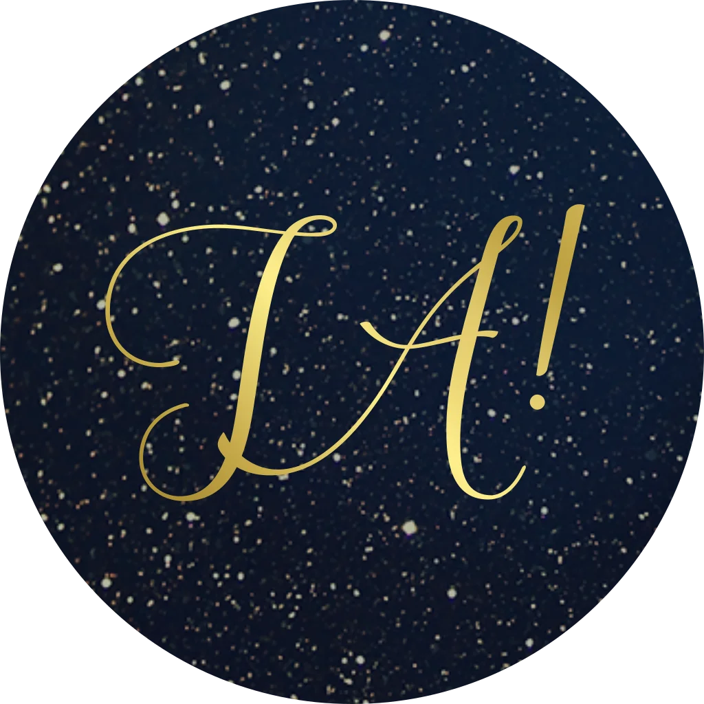 Donkerblauwe sticker met JA! in goudfolie