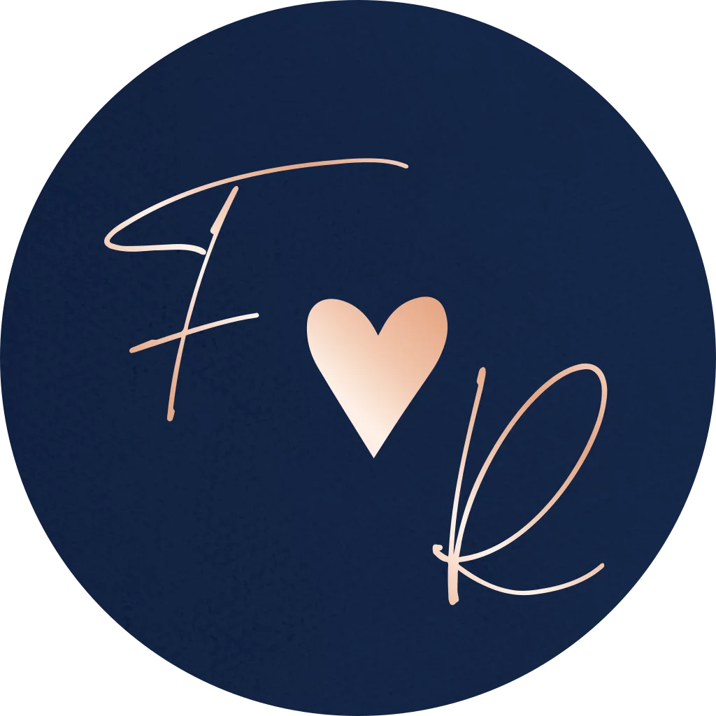 Donkerblauwe sluitsticker voor de envelop van de trouwkaart met in roségoudfolie jullie initialen en een hartje. Deze sticker past perfect bij de trouwkaart met kaartcode: FD-T0573.