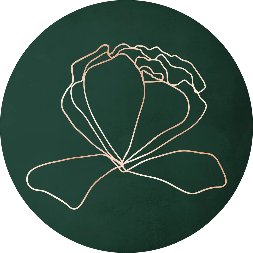 Donkergroene sluitsticker met roségoudfolie klaproos. Deze sticker past perfect bij de donkergroene trouwkaart met dezelfde klaprozen met kaartcode FD-T0605-1.