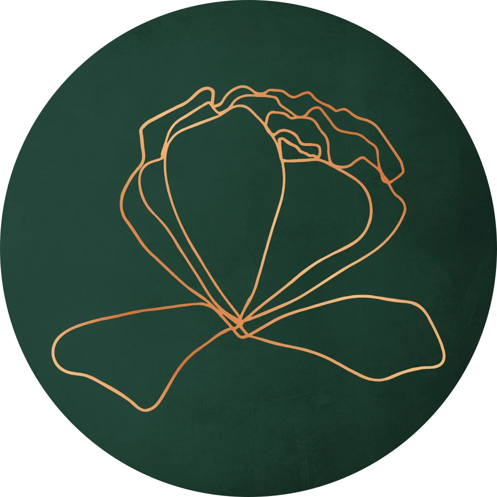 Donkergroene sluitsticker met koperfolie klaproos. Deze sticker past perfect bij de donkergroene trouwkaart met dezelfde klaprozen met kaartcode FD-T0605-1.