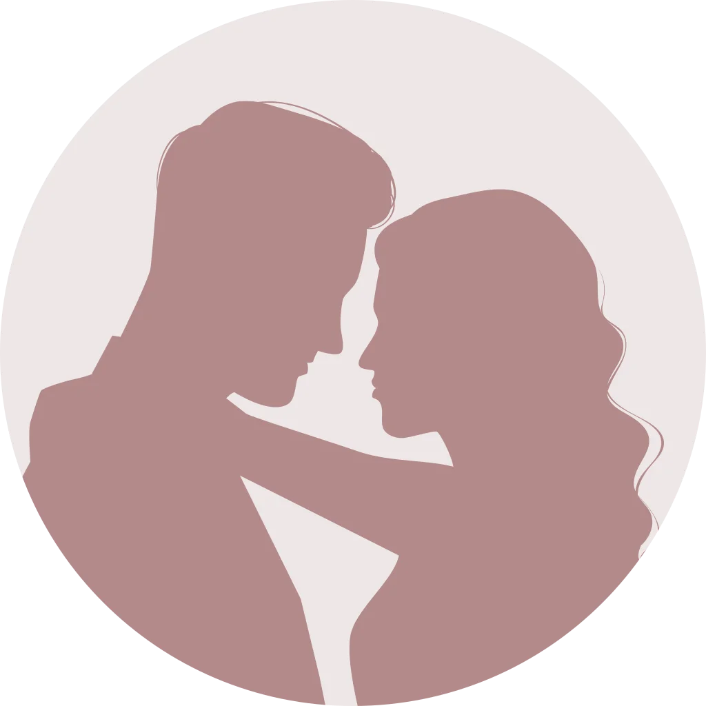 Oudroze sluitsticker silhouet bruidspaar in close-up, je ziet dus alleen hun hoofden. Deze sticker past bij de silhouet trouwkaart T0764. Je kunt de sticker nog aanpassen in de editor.