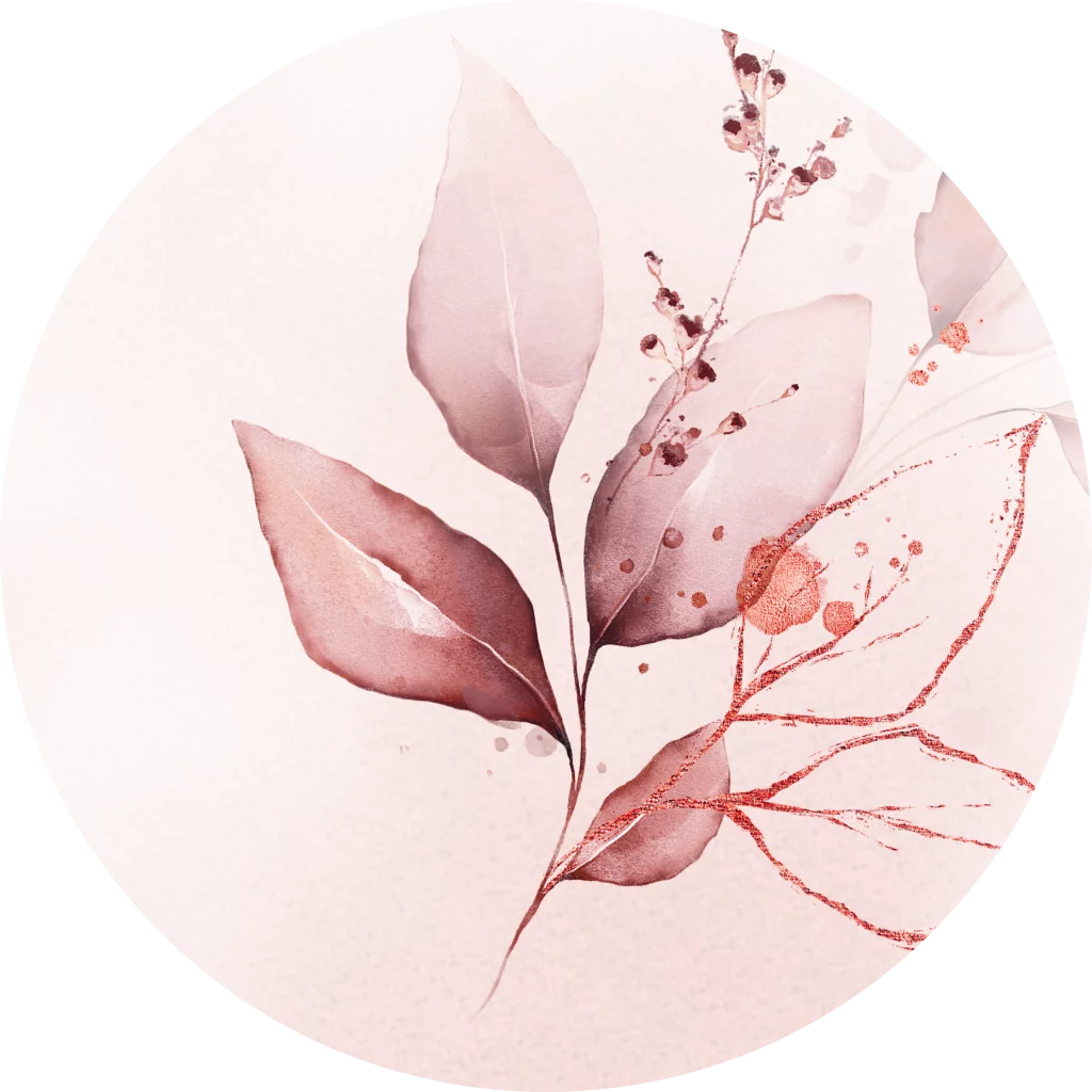 Roze botanische sluitsticker met roze blaadje en lichtroze waterverfvlek om de envelop van je kaart mee te sluiten. Deze sticker past perfect bij de trouwuitnodiging met kaartcode FD-T0581-roze.