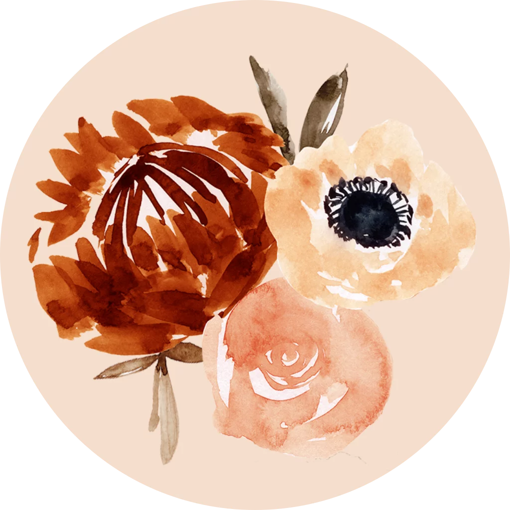Sluitsticker met roze, oranje en rode waterverf bloemen. Past perfect bij diverse trouwkaarten met dezelfde bloemen.
