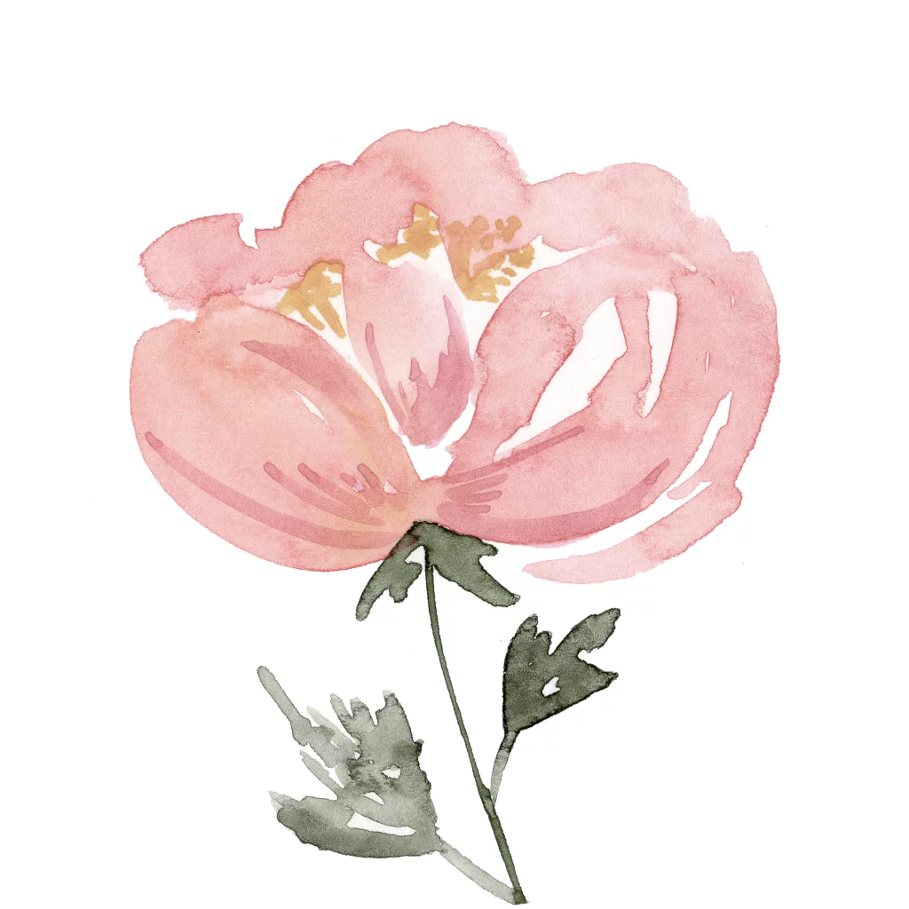 Sluitsticker met waterverf roze bloem met steeltje. Matcht mooi bij een roze of gekleurde envelop.