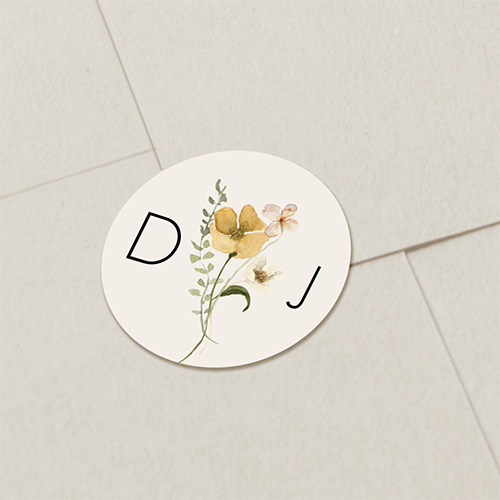 Mooie sluitsticker met wilde bloemen en initialen in modern lettertype. Deze sluitsticker past perfect bij deze trouwkaart. Pas deze sluitsticker naar eigen wens aan in onze ontwerptool.