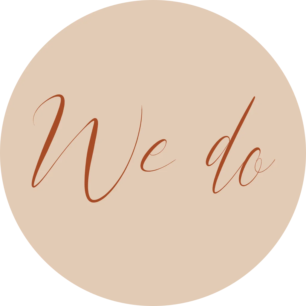 Een mooie sluitzegel die perfect past bij deze trouwkaart met sierlijke typografie in roestkleur. Op de sticker staat 'We do' in een prachtig lettertype. Pas deze sticker eenvoudig aan in onze editor.