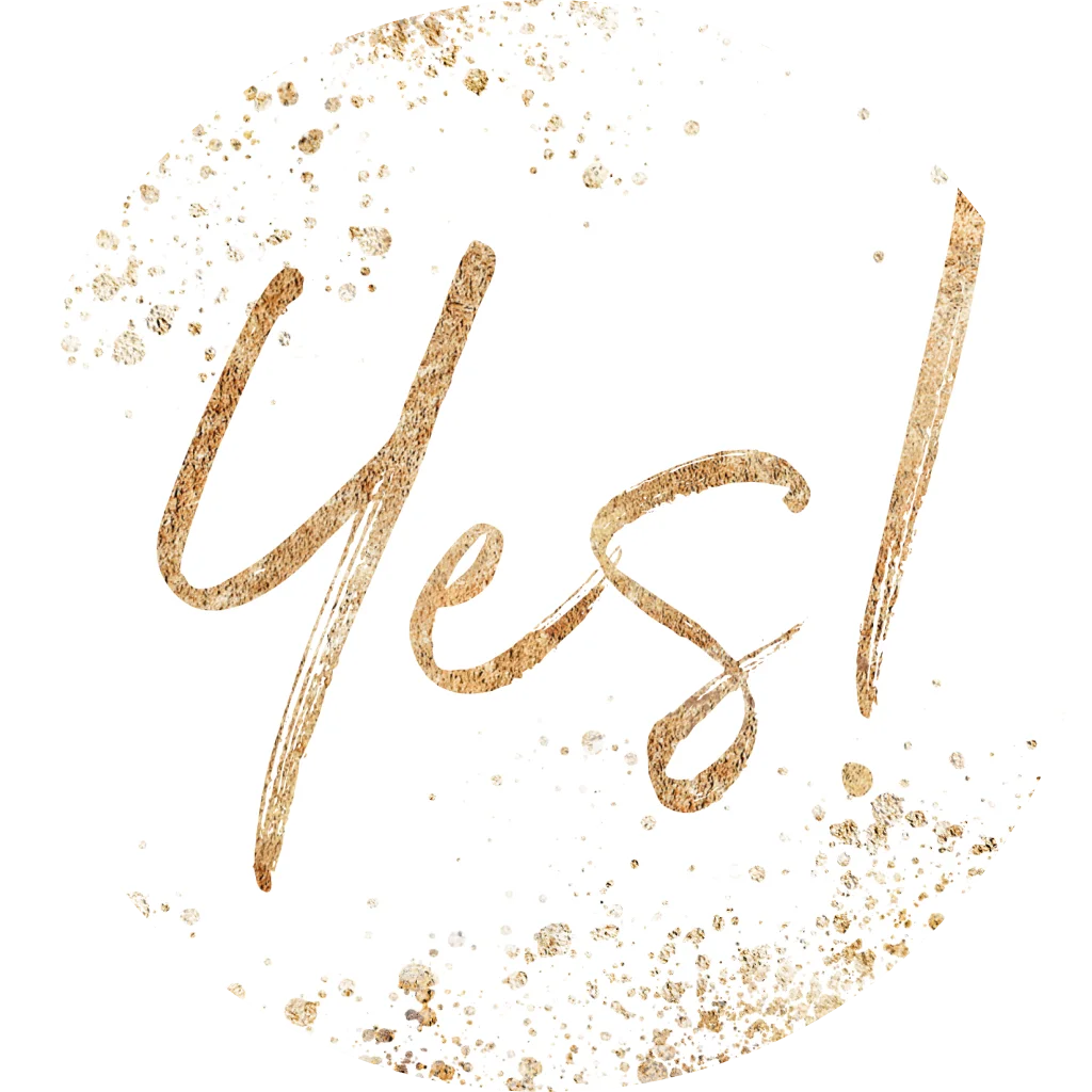Sticker Yes! met blush waterverf en goudkleur spetters
